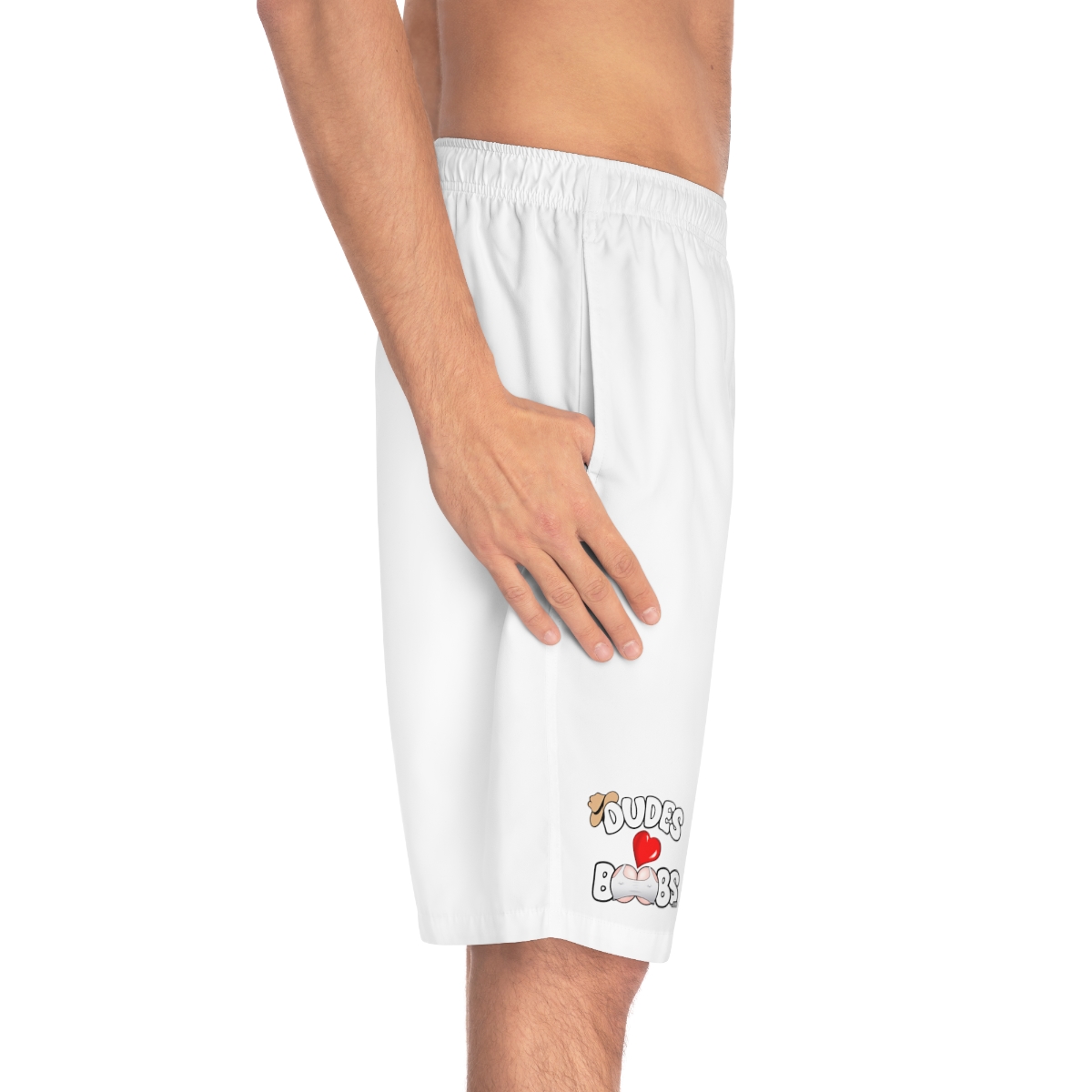 Add a personalized touch to your wardrobe with these custom board shorts for men. Made with light, breathable polyester fabric, these shorts feature 2 side pockets for daily convenience, an elastic waistband, and a black drawstring rope.